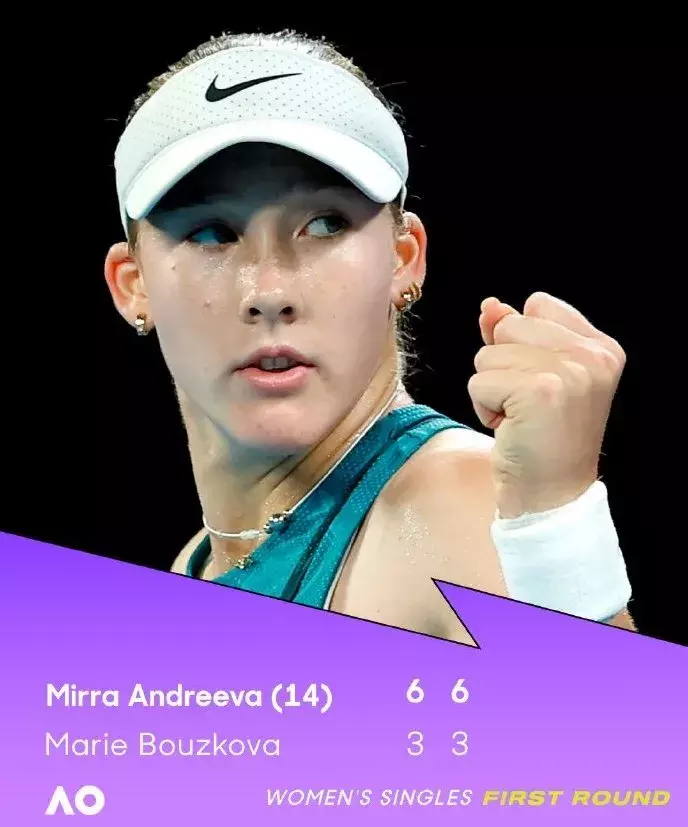 澳网女单首轮,安德烈耶娃以6-3、6-3布兹科娃,拿到澳网2025赛季首胜,首获开门红。